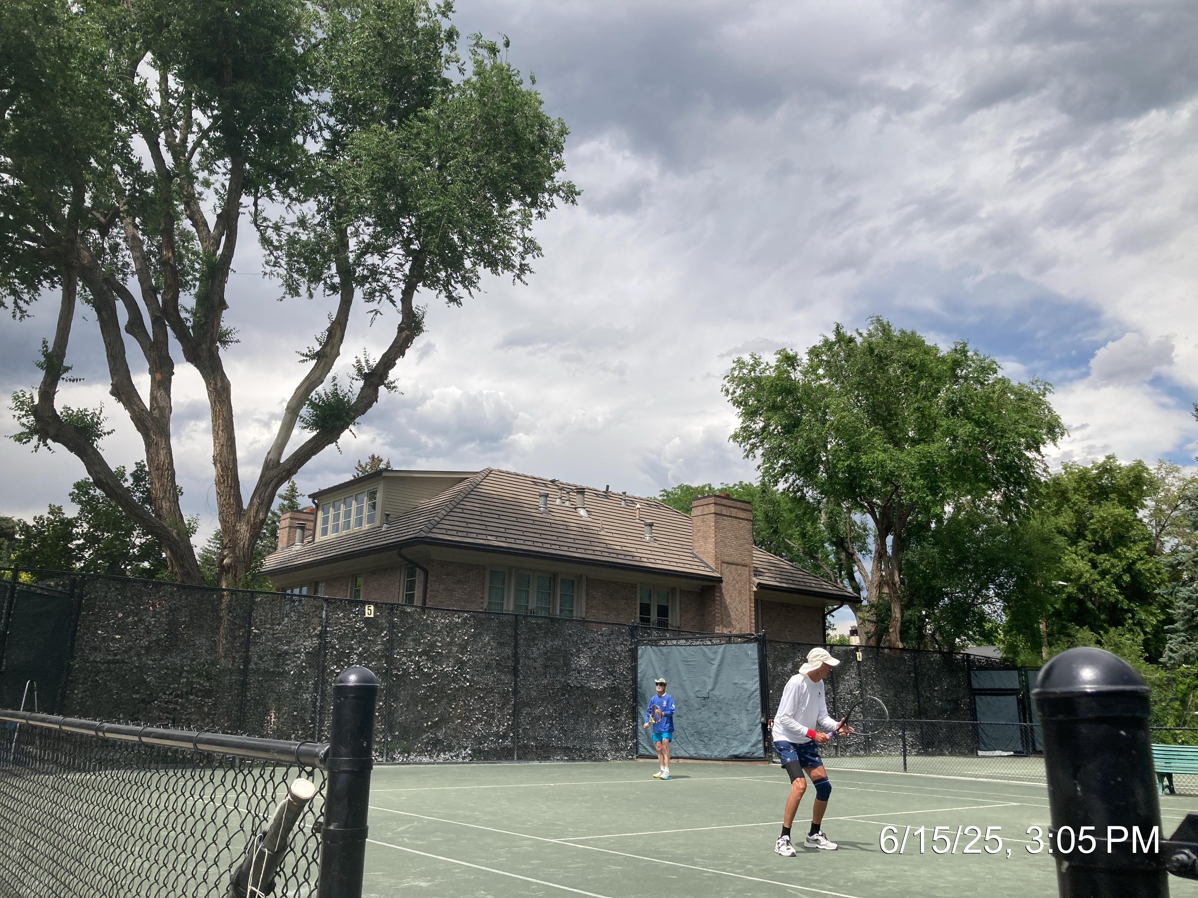 Denver City Open 80 & Over Doubles Final at Denver Tennis Club: Bo와 Garrol이 보인다.